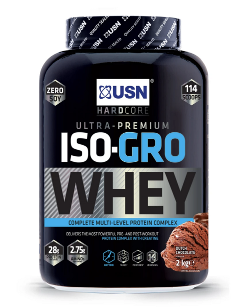 ISO-Gro Whey je nová generace vysokoproteinového nápoje pro budování svalové hmoty díky kvalitním syrovátkovým bílkovinám. Obsahuje esenciální aminokyseliny i BCAA. Navíc obsahuje také komplex s minerály jako je zinek, hořčík, draslík, vápník a kreatinem monohydrátem. Tato směs je vhodným nápojem před tak i po tréninku. Kreatin zvyšuje fyzickou výkonnost v krátkodobých intenzivních výkonech. Vápník podporuje funkci svalů a trávicích enzymů. Zinek ovlivňuje normální metabolismus sacharidů, mastných kyselin, syntézu bílkovin a funkci imunitního systému. Hořčík přispívá ke snížení únavy a vyčerpání. Draslík ovlivňuje funkci svalů a nervového systému. ISO-Gro Whey je v dostání ve třech lahodných příchutích. Bez obsahu lepku. Doporučené dávkování: