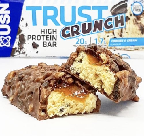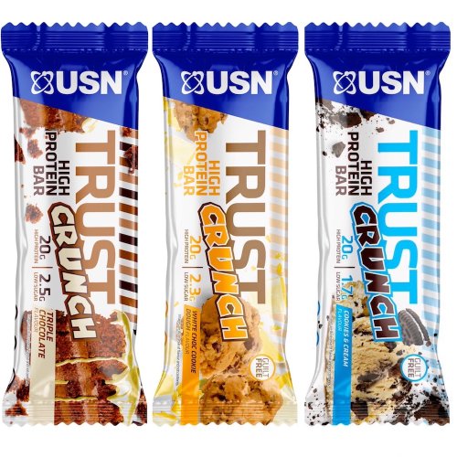 Trust Crunch Bar je proteinová tyčinka, která kombinuje skvělou chuť a zdravé složení. Z jedné výživné tyčinky získáte 20 g bílkovin a jen 2 g cukru. Trust Crunch Bar dodá tělu potřebné bílkoviny pro Vaše tělo a svaly. Vhodná kdykoliv během dne jako chutná svačinka v mnoha příchutích.