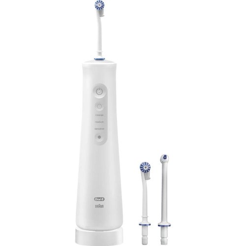 Šetrně čistěte mezizubní prostory s bezšňůrovou ústní sprchou Oral-B AquaCare s technologií Oxyjet pro osvěžující péči o dásně. Elektrická ústní sprcha s technologií Oxyjet, nastavení pulzování pro precizní čištění, lineární nebo rotační proud vody. Postará se o vaše zuby a zároveň odstraní zbytky jídel z mezizubních prostor. Zlepšuje péči o vaše dásně. Režim On-Demand, kterým můžete sami ovlivňovat intenzitu proudu vody. Nádobka na vodu je umístěna přímo v zadní části rukojeti. 6 volitelných čisticích režimů, 3 intenzity čištění – jemná, středně intenzivní a intenzivní.