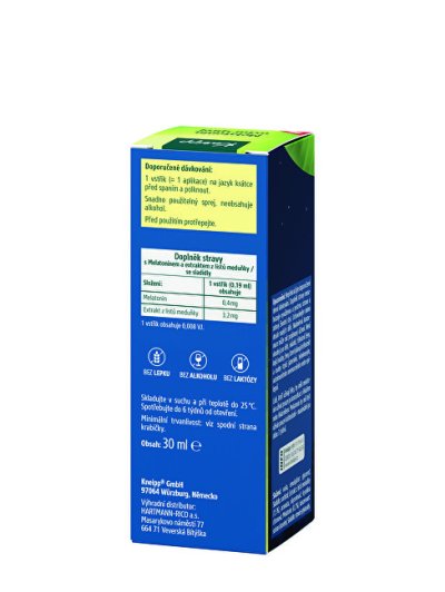 Ústní sprej s melatoninem a extraktem z meduňky je určený pro podporu usínání a klidného spánku. Harmonizující receptura v duchu filozofie Sebastiana Kneippa pomáhá zklidnit mysl po náročném dni a přirozeně navodit večerní relaxaci. Díky formě spreje se účinné látky rychle vstřebávají přes ústní sliznici.