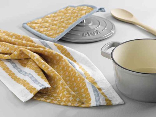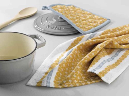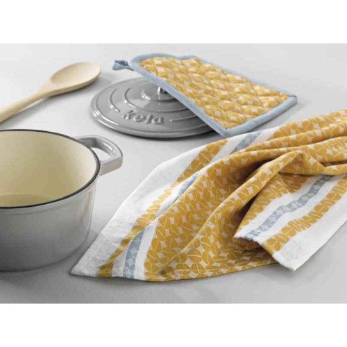Z trendy kolekce kuchyňských textilií Svea: vysoce kvalitní utěrka je vyrobena ze 100% bavlny (190 g/m2). Dominuje kari žlutá barva, která u tohoto modelu krásně ladí s mrazivou modrou a bílou. Rozměry: 50 x 70 cm. Lze prát do 60° C. 100% bavlna 50x70cm