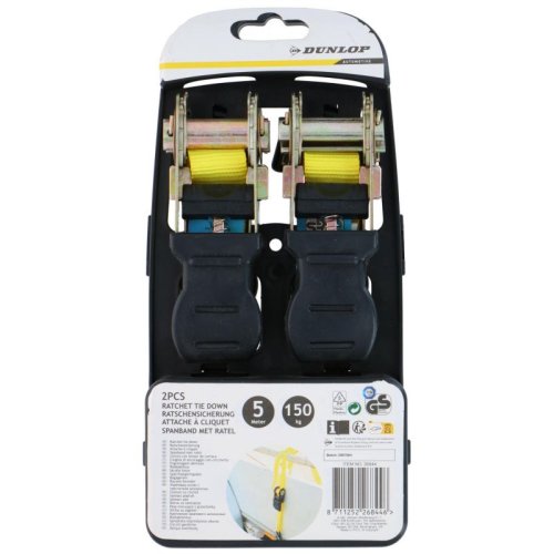 Pětimetrový ráčnový poutací popruh Dunlop je perfektním řešením pro bezpečné zajištění nákladu během přepravy. Díky své robustní konstrukci a spolehlivému ráčnovému mechanismu nabízí tento upínací popruh nosnost až 150 kg. Délka 5 metrů poskytuje dostatek prostoru pro zajištění různých předmětů, zatímco ráčna zajišťuje pevné a bezpečné držení. S 5metrovým ráčnovým popruhem Dunlop můžete s jistotou vyrazit na cestu. Balení obsahuje 2 kusy.Specifikace Dunlop 5 M ráčnový popruh 2 kusyUpínací popruh: 5mS ráčnouBarva žlutáZnačka: DunlopNosnost: do 150 kg
