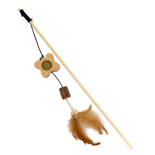 Dopřejte své kočce hodiny zábavy a pohybu s touto stylovou vábničkou. Hračka je tvořena pevným, pohodlně uchopitelným prutem a odolnou šňůrkou, na jejímž konci je dřevěná hračka s ukrytým catnipem.