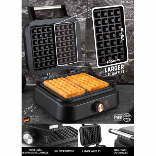 • Výkon: 1500W• Napětí: 220-240 V, 50/60Hz• Velikost pečící desky: 22,5*13 cm• Nepřilnavý černý titanový povrch na desce• Barva: černě růžové zlato • Originální belgická velikost vafle• Větší vafle - …