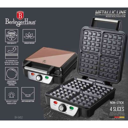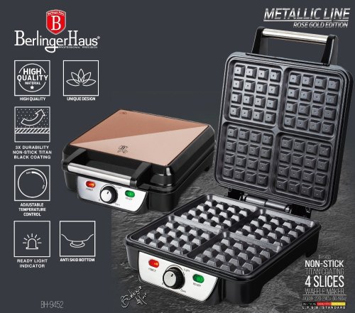 - příkon: 1100W- napětí: 220-240 V, 50/60Hz- velikost pečící plochy: 23,9*23,9 cm (1 vafle: 11*11 cm)- nepřilnavý Titanový povrch - barva: zlatorůžová- pečení 4 vaflí najednou- kontrolky teploty a provozu- …