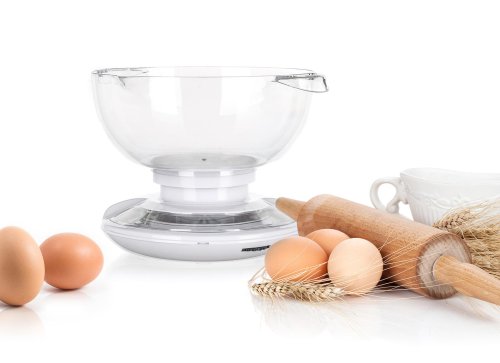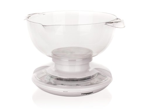 Mechanická kuchyňská váha 5 kg CULINARIA, objem mísy 2 L, materiál: plast ABS tělo (bílá barva), mísa průhledný plast.