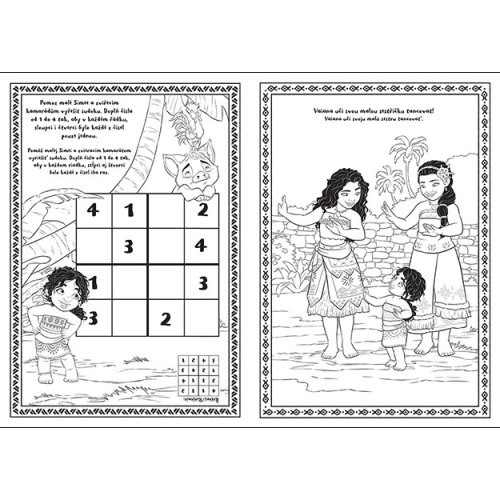 Omalovánky obsahují 16 černobílých stran s obrázky k vybarvení a oblíbenými aktivitami.
