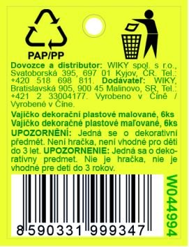 Vajíčko dekorační plastové barevné o velikosti 4x6 cm. 6 ks v organza sáčku.