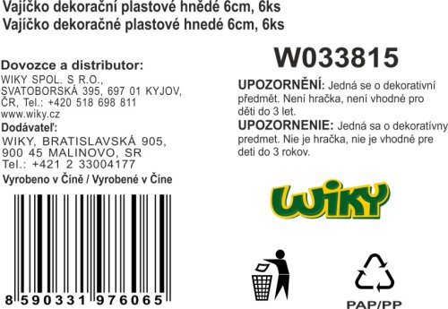 Vajíčko dekorační plastové hnědé o velikosti 6 cm.