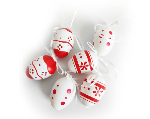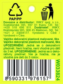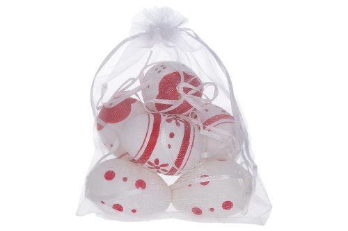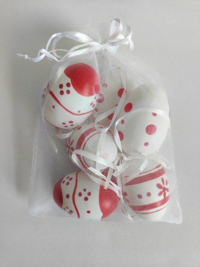 Vajíčko dekorační plastové malované o velikosti 6 cm. 6ks v organza sáčku. Cena za jeden organza sáček.