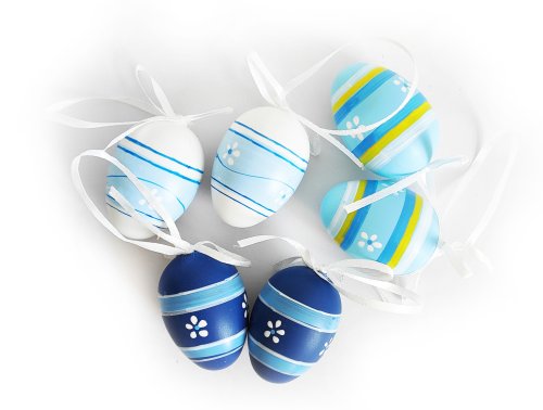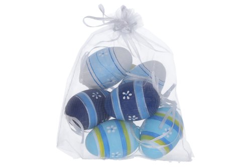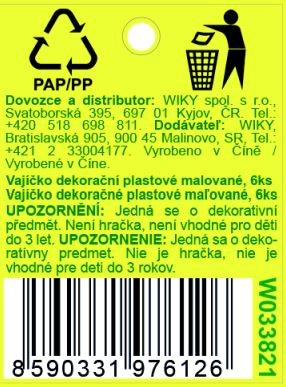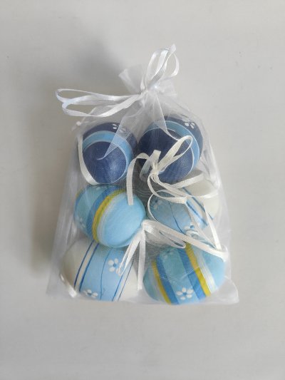 Vajíčko dekorační plastové malované o velikosti 6 cm. 6ks v organza sáčku. Cena za jeden organza sáček.