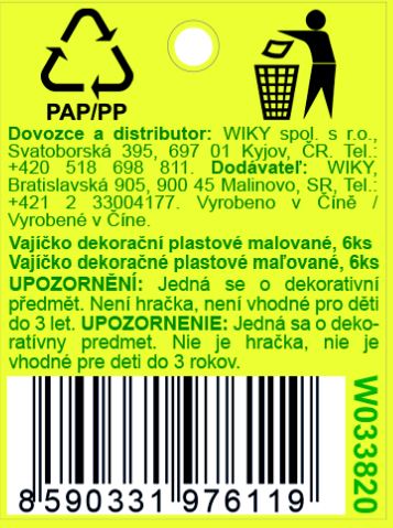 Vajíčko dekorační plastové malované o velikosti 6 cm.