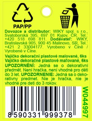 Vajíčko dekorační plastové bílé a modré o velikosti 4x6 cm. 6 ks v organza sáčku.