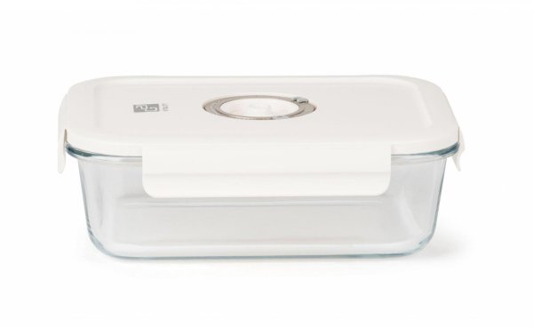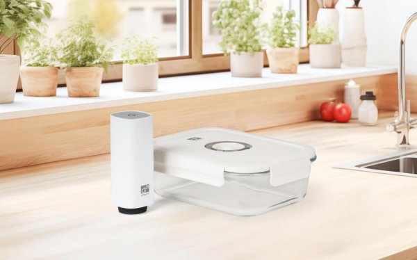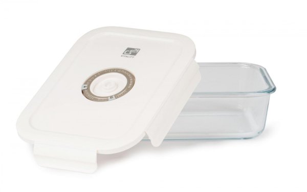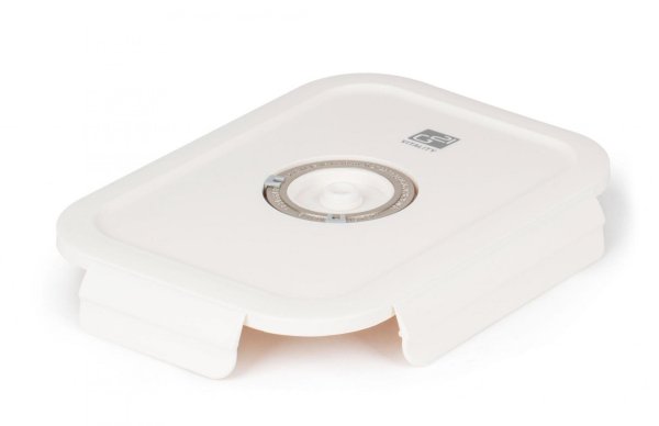Plastové víko je vybaveno vakuovacím ventilem a praktickým nastavováním data. Budete tak vědět, kdy byly potraviny vakuovány nebo do kdy se mají spotřebovat. Ventil uprostřed víka lze jemně zmáčknout pro snadné uvolnění vakua.