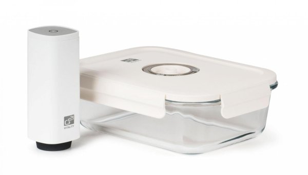 Pro pohodlné a snadné vakuování čerstvých i hotových potravin doporučujeme vynikající vakuovací dózu G21 s objemem 1 480 ml. Prodlouží trvanlivost potravin, zachová jim čerstvost i plnou chuť a vůni a především všechny zdraví prospěšné látky. Velkou výhodou této dózy je její široké využití – potraviny v ní po zavakuování můžete uložit do ledničky, zamrazit nebo po sundání víka rovnou zapékat v troubě či horkovzdušné fritéze.