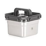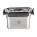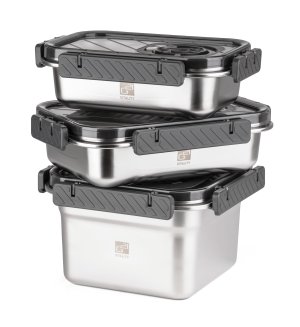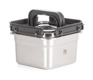 Dóza je vyrobena z kvalitní nerezové oceli, která je zcela bezpečná pro styk s potravinami. Materiál neovlivňuje chuť ani barvu jídla, nerezne a odolává i extrémním teplotám od -100 až do +400 °C. Díky tomu dózu využijete nejen k uchovávání čerstvých potravin, ale také k mražení a dokonce i k pečení (bez víka). Hladký neporézní povrch brání usazování bakterií a snadno se čistí, dóza je tedy ideální pro každodenní použití doma, v restauraci i při outdoorových aktivitách.