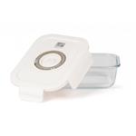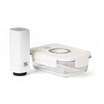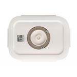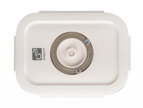 Plastové víko je vybaveno vakuovacím ventilem a praktickým nastavováním data. Budete tak vědět, kdy byly potraviny vakuovány nebo do kdy se mají spotřebovat. Ventil uprostřed víka lze jemně zmáčknout pro snadné uvolnění vakua.