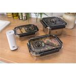 Víko z BPA Free plastu je vybavené vakuovacím ventilem a praktickým nastavitelným ukazatelem data. Budete tak vědět, kdy byly potraviny vakuovány nebo do kdy se mají spotřebovat. Pro uvolnění vakua a otevření dózy stačí jemně zmáčknout ventil uprostřed víka.