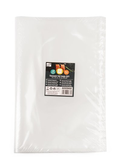 Hladké vakuovací sáčky G21 o rozměrech 40 x 50 cm jsou díky své vysoké pevnosti a kvalitnímu provedení vhodné nejen pro prodloužení trvanlivosti potravin vakuováním a jejich uchovávání v ledničce nebo v mrazáku, ale využijete je i k vakuování surovin pro sous-vide vaření.