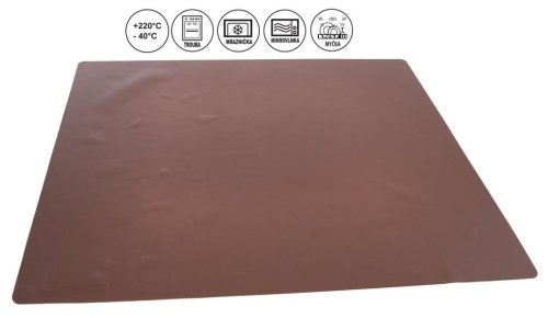 Hnědý silikonový vál. Praktický a skladný pomocník na přípravu těsta, těsto se při válení nelepí, vál se snadno udržuje, lze mýt v myčce na nádobí. Silikon je velmi populární materiál, který pro své jedinečné vlastnosti našel své uplatnění i v kuchyni. Těsto nikdy nekrájejte kovovým nožem. Rozměr 60 x 50 x 0.08 cm. EAN 8592381169732
