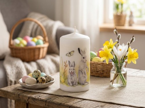 Válec 60x110mm Easter Garden Zajíci, svíčka