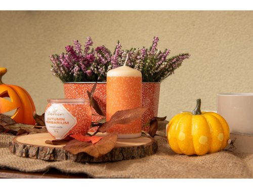 Válec 60x120 mm Autumn Herbarium, oranžová svíčka