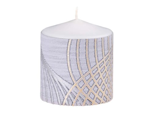 Válec 70x80mm tapeta geometrie šedozlatá svíčka