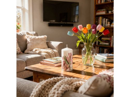 Tento svíčkový válec s motivem krokusů přinese do vašeho interiéru svěžest a přírodní krásu.