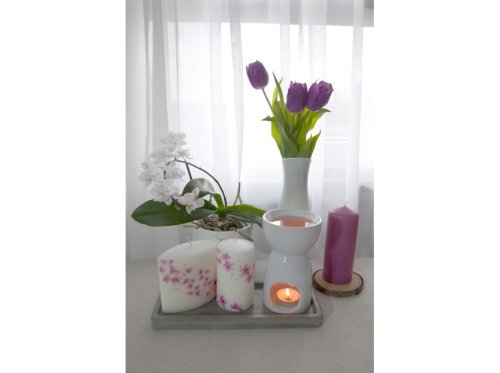 Tato svíčka s motivem květů přinese do vašeho domova svěžest a jemnou vůni přírody.