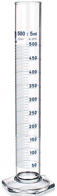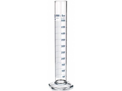 Odměrný válec 500 ml se 6hrannou patkou a výlevkou, skl. SIMAX.