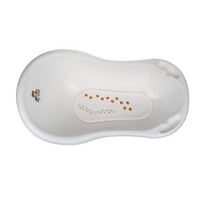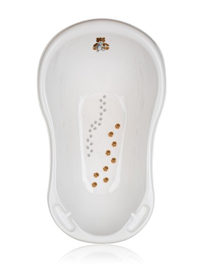Praktická dětská vanička BEARS s nosností 25 kg. Rozměry: 84 x 49 x 29cm. Na okraji jsou dvě malá úložná místa, která jsou jako dělaná pro odložení mýdla nebo koupacích hraček.