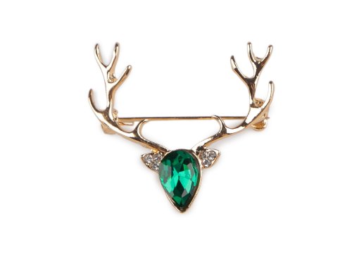 Brož s jelení hlavou s broušeným kamenem je velice elegantní, nádherně se leskne. Je stylovým doplňkem, který přinese vánoční náladu do jakéhokoliv outfitu. Bude vypadat skvěle na kabátě, klopě saka, svetru, šatech i halence. Dá se připnout i na čepici či kabelku, využijete ji i na ozdobné sepnutí šály a šátku. Brož má vzadu brožový špendlík. Je na plastové kartě, která se dá zavěsit na prodejní stojany.