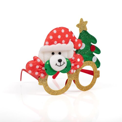 Vánoční brýle s třpytkami a dekoracemi – sobem, Santou, pejsek a sněhulákem. Velikost brýlí 17×14 cm