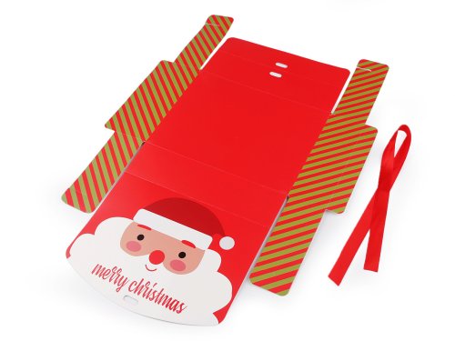 Vánoční krabička se skvěle hodí na zabalení mikulášského i vánočního dárku. Zdobí ji potisk Santa Clause. Krabičku dodáváme v rozloženém stavu (34 x 48 cm). Složíte ji jednoduše dle vyznačených ohýbacích okrajů. Součástí balení je saténová stuha. Krabička nemá atest na potraviny. Pochoutky a jiné laskominy doporučujeme vložit zabalené v sáčku.