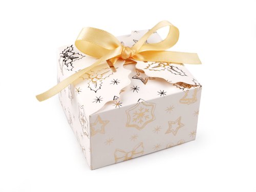 Elegantní krabička s vánočními motivy je vhodná na zabalení menších dárků (šperků, pralinek, ponožek apod.). Motivy jsou metalické. Součástí balení je saténová stuha. Krabičku dodáváme v rozloženém stavu (16 x 18 cm). Složíte ji podle vyznačených ohýbacích krajů. Krabička nemá atest na potraviny, pochoutky a jiné laskominy doporučujeme vložit zabalené v sáčku.
