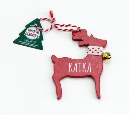Dřevěné dekorace se jmény či texty lze použít nejen jako ozdobičku na stromeček, ale i jako stylovou jmenovku na dárek. S rolničkou a okrasnou stužkou. Sobíci pro ženy, bílí medvědi pro muže.