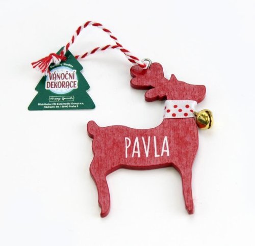 Dřevěné dekorace se jmény či texty lze použít nejen jako ozdobičku na stromeček, ale i jako stylovou jmenovku na dárek. S rolničkou a okrasnou stužkou. Sobíci pro ženy, bílí medvědi pro muže.