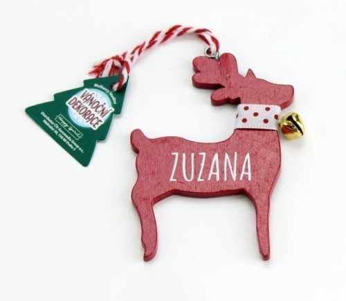 Dřevěné dekorace se jmény či texty lze použít nejen jako ozdobičku na stromeček, ale i jako stylovou jmenovku na dárek. S rolničkou a okrasnou stužkou. Sobíci pro ženy, bílí medvědi pro muže.