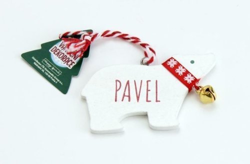Dřevěné dekorace se jmény či texty lze použít nejen jako ozdobičku na stromeček, ale i jako stylovou jmenovku na dárek. S rolničkou a okrasnou stužkou. Sobíci pro ženy, bílí medvědi pro muže.