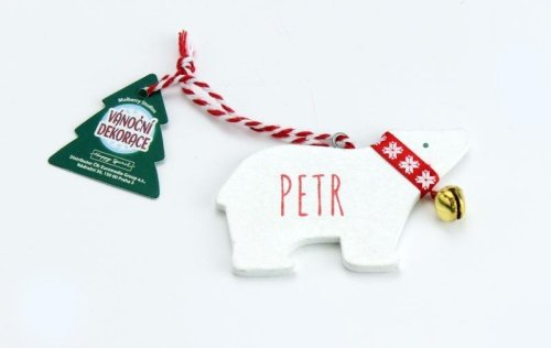 Dřevěné dekorace se jmény či texty lze použít nejen jako ozdobičku na stromeček, ale i jako stylovou jmenovku na dárek. S rolničkou a okrasnou stužkou. Sobíci pro ženy, bílí medvědi pro muže.