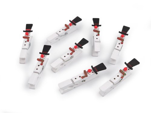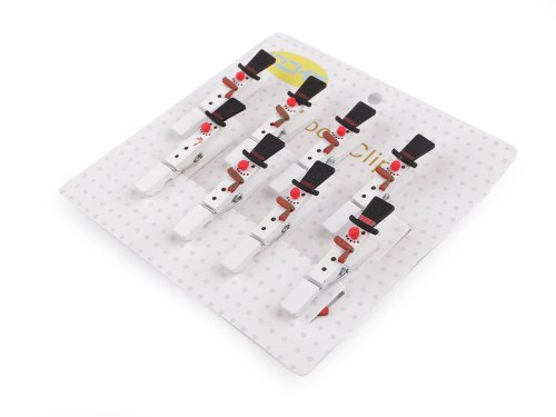 Vánoční dřevěný kolíček sněhulák, sob - bílá sněhulák (8 ks)