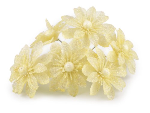 Rozkvetlé vánoční hvězdy nesmí chybět v žádném vánočním aranžmá. Jejich povrch s třpytivými glitry dodá vašemu domovu nádech elegance a luxusu. Květy vánoční hvězdy jsou připevněny k ohebnému drátku, kterým lze lehce manipulovat. V jednom svazku je 6 květů vánočních hvězd. Použití: Jednotlivé květy můžete snadno naaranžovat na věnce, květinové vazby či sváteční tabuli. Jsou vhodné i na zapichování do polystyrenových polotovarů.
