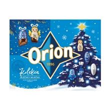 Orion mléčná kolekce Plné, duté a plněné figurky z mléčné čokolády a máčené fondánové salonky Hmotnost: 347 g