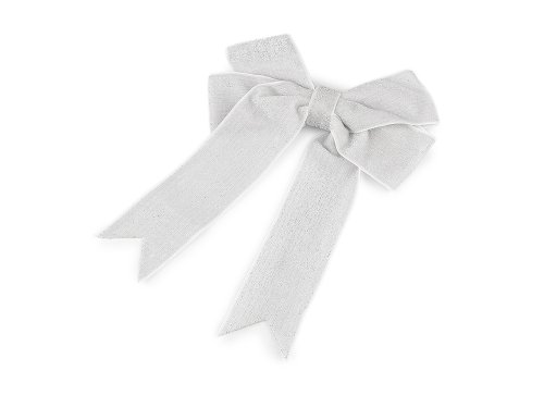 Vánoční mašle sametová dvojitá 13x18 cm - stříbrná lurex (6 ks)