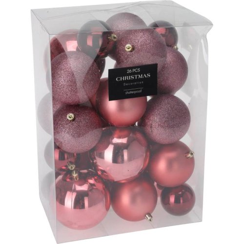 Vánoční ozdoby koule sada 26 ks tmavě růžová KO-CAN302060