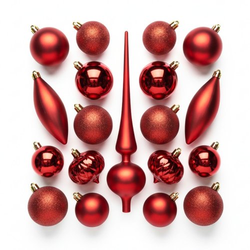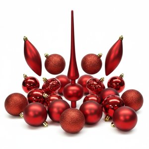 Obsah sady: 1 ks matná špička na stromek (28 cm) 2 ks lesklé cibulky (6 cm) 2 ks matné rampouchy (12 cm) 8 ks hladkých koulí (6 cm): 2 ks lesklé, 2 ks matné, 2 ks s třpytkami, 2 ks perleťové 6 ks hladkých …