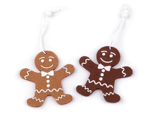 Filcové perníčky se hodí na ozdobení věnců, stromečku, větviček ve váze apod. Mají působivě zpracovaný potisk polevy.