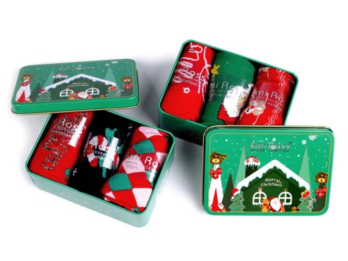 Vánoční bavlněné ponožky s obrázky jsou hitem. Svým designem dokáží potěšit i pobavit zároveň. Jsou zabalené po 3 párech v dárkové plechové krabičce s vánočním motivem, což ocení všichni, kteří neradi balí dárky. Ponožky se příjemně nosí, jsou pružné a prodyšné. Ve špičce mají pohodlný plochý šev, netlačí, horní pružný lem nohu nesvírá. Velikostní tabulku ponožek najdete na této stránce. Upozorňujeme zákazníky, že ponožky jsou trochu menší než uváděné velikosti. V krabičkách jsou náhodné vzoryponožek, jejich obrázky se mohou odlišovat.