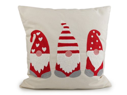 Vánoční povlak na polštář vyšívaný 45x45 cm - režná světlá skřítek