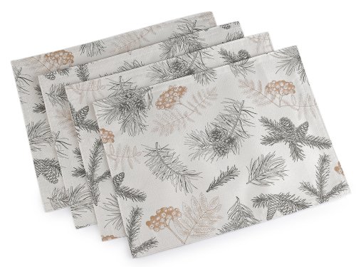 Stylové vánoční prostírání je ozdobené motivem větviček a šišek. Díky protkanému lurexu se jemně třpytí. Slavnostně doladí vaši domácnost, hodí se do tradičního i moderního stylu interiéru. Je pevné, oboustranné, ze dvou vrstev tkaniny. Chrání stůl před skvrnami a poškrábáním. Prostírání je i skvělým dárkem pro vaše blízké, kteří si potrpí na kvalitní a estetické doplňky do domácnosti.